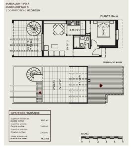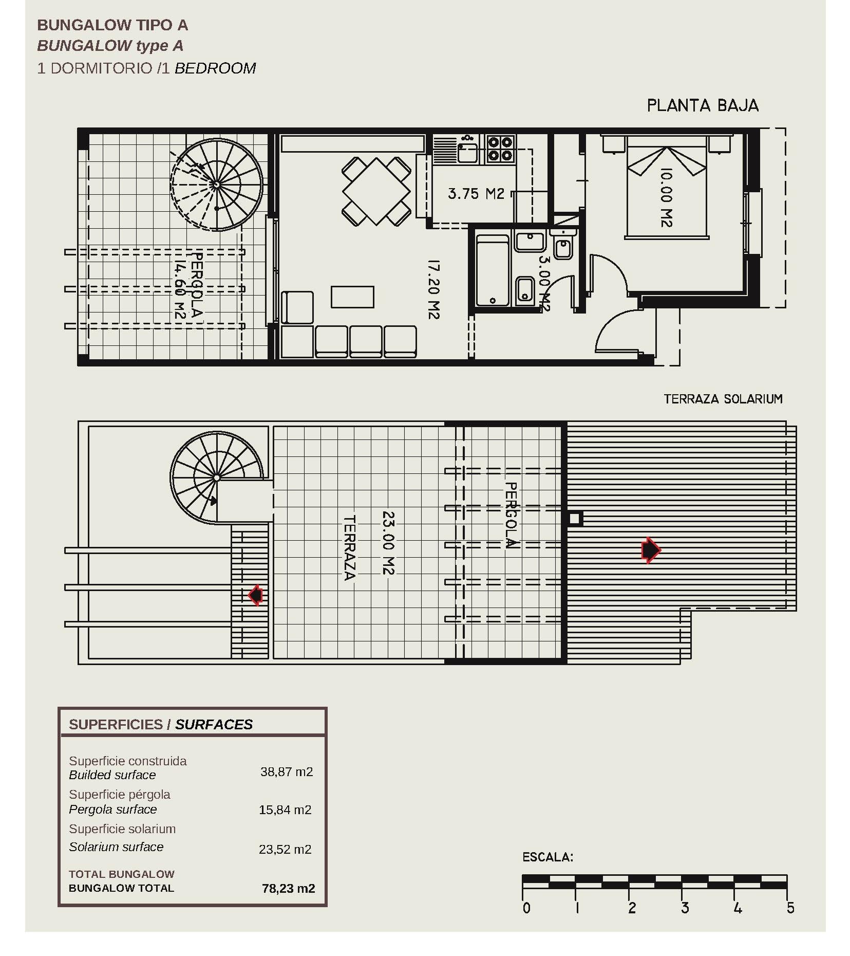 BOVENSTE VERDIEPING BUNGALOW APPARTEMENTEN IN CALPE Mooie bovenste verdieping bungalow appartementen met 1 slaapkamer, 1 badkamer, open keuken met de woonkamer, inbouwkasten en terrassen. Alle bungalows hebben parkeerplaats . Residentieel complex heeft mooie gemeenschappelijke tuin met zwembad. Calpe, één van de steden van La Marina Alta, ligt aan de noordkust van de provincie Alicante, omringd door de steden Altea, Benidorm, Teulada-Moraira, Benissa. Calpe heeft een prachtige mix van oude Valenciaanse cultuur en moderne toeristische faciliteiten. Het is een prima uitvalsbasis om de omgeving te verkennen of te genieten van de vele plaatselijke stranden. Calpe alleen al heeft drie van de mooiste zandstranden aan de kust. Calpe heeft ook twee zeilclubs: Real Club Náutico de Calpe en Club Náutico de Puerto Blanco. Vissersdorp Calpe is nu omgetoverd tot een toeristische trekpleister, de stad ligt op een ideale locatie, gemakkelijk bereikbaar via de snelweg A7 en de N332 die van Valencia naar Alicante loopt; het is ongeveer 1 uur rijden van het vliegveld van Alicante en 1,5 uur van het vliegveld van Valencia.