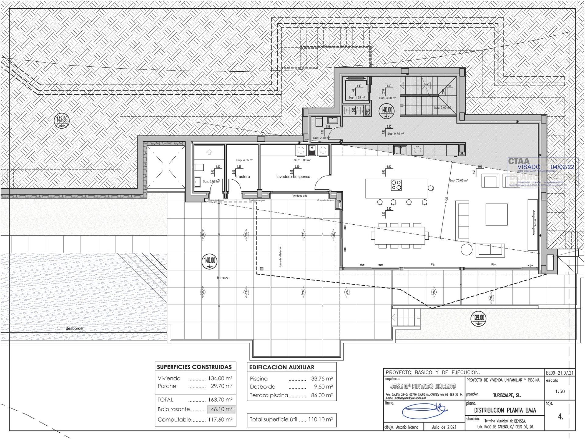 Luxe nieuwbouwwoning met panoramisch uitzicht op zee in Raco de Galeno, Benissa Costa Exclusieve locatie aan de Costa Blanca Deze luxe villa ligt in de prestigieuze urbanisatie Raco de Galeno in Benissa Costa en biedt een perfecte combinatie van modern design en mediterrane charme. De woning ligt op slechts 2 km van de dichtstbijzijnde stranden en op slechts 5 km van de snelweg AP-7, waardoor u snel in Moraira, Calpe en andere bekende bestemmingen aan de Costa Blanca bent. De internationale luchthaven van Alicante ligt op ongeveer 80 km afstand, terwijl prestigieuze golfbanen zoals Club de Golf Ifach en Altea Golf binnen 10 tot 15 km liggen. Moderne architectuur en ruime interieurs De villa is ontworpen om maximaal te profiteren van het natuurlijke licht en het spectaculaire uitzicht op zee. De villa heeft een eigentijdse architectuur met grote ramen van vloer tot plafond en een naadloze integratie van binnen en buiten. De woning is verdeeld over meerdere verdiepingen en verbonden door een privélift. Er zijn vier ruime slaapkamers, elk met een eigen badkamer, plus een extra gastentoilet. De master suite heeft directe toegang tot een privéterras met een prachtig uitzicht op de Middellandse Zee. Uitzonderlijke woon- en entertainmentruimtes De open woon- en eetkamer wordt aangevuld met een volledig uitgeruste designkeuken met apparatuur van topkwaliteit, ideaal voor zowel het dagelijks leven als het ontvangen van gezelschap. Het pand wordt omgeven door ruime terrassen, waardoor er meerdere ontspannings- en entertainmentruimtes in de open lucht zijn gecreëerd. Luxe buitenleven Het hoogtepunt van deze villa is het infinity zwembad met panoramisch uitzicht op de kustlijn. Een royaal terras bij het zwembad biedt de perfecte ruimte om te zonnebaden, buiten te dineren of te genieten van onvergetelijke zonsondergangen met familie en vrienden. Premium voorzieningen en comfort Deze nieuwbouwwoning is voorzien van geavanceerde smart home-technologie, vloerverwarming en airconditioning, waardoor u het hele jaar door comfortabel kunt wonen. De woning heeft ook een ondergrondse verdieping met veel ruimte voor extra gebruik. Ideaal als permanente woning of vakantiehuis Met een volledige bouwvergunning en een verwachte oplevering binnen 18 maanden na reservering, biedt deze villa een unieke kans om een hedendaags meesterwerk te bezitten op een van de meest gewilde locaties aan de Costa Blanca. De nabijheid van zandstranden, charmante kustplaatsjes, jachthavens, winkelgebieden en buitenactiviteiten maakt deze villa zeer aantrekkelijk voor zowel permanent wonen als als luxe vakantiehuis. Verzeker uzelf van uw droomvilla in Raco de Galeno, Benissa Costa, en omarm de ultieme mediterrane levensstijl met adembenemend uitzicht op zee en ongeëvenaard comfort.