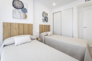 MOOIE APPARTEMENTEN MET ZEEZICHT IN LA MANGA Deze urbanisatie is gelegen in het grootste uitbreidingsgebied van La Manga. In deze nieuwe urbanisatie zijn de huizen ontworpen om te profiteren van elke hoek van het huis, evenals de zorg bij het kiezen van de materialen en hun ontwerp. Appartementen met gepantserde toegangsdeur en deuren in wit gelakt met roestvrijstalen beslag. Wit, monobloc jaloezieën en dubbele beglazing met luchtkamer. In de hoofdslaapkamer ingebouwde kleerkast met schuifdeuren, met een scheidingsplank in de vide, een bar en een commode met drie lades. Keuken met hoge en lage meubels, in wit, gola-achtige handgreep, enkele spoelbak met afdruiprek, keramische kookplaat, elektrische oven en afzuigkap. Pre-installatie van airconditioning (koude en warmte) via leidingen met bepaling van zonering van kamers. La Manga del Mar Menor is een natuurlijke strook land omringd door twee zeeën, de Mar Menor en de Middellandse Zee. Aan deze zeldzaamheid kunt u de meerdere vrijetijds- en vrijetijdsopties, restaurants, supermarkten, medische centra, apotheken, watersportcentra, golfbanen toevoegen. La Manga ligt aan de noordkust van de Costa Calida en is een populaire vakantiebestemming voor toeristen. De smalle landstrook die de warme lagune en de koudere zee scheidt, heeft een uniek microklimaat. Het is een van de meest exotische gebieden van Spanje. De luchthaven van Corvera ligt op ongeveer 1 uur rijden en de luchthaven van Alicante op ongeveer 2 uur rijden.