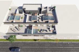 Nieuwbouw appartementen in Pilar de la Horadada met privé jacuzzi Toplocatie in het hart van Pilar de la Horadada Gelegen in het bruisende centrum van Pilar de la Horadada, Alicante, biedt dit exclusieve nieuwbouwproject een onovertroffen combinatie van modern wonen en mediterrane charme. Pilar de la Horadada is een pittoresk Spaans stadje in het meest zuidelijke deel van de Costa Blanca, bekend om zijn gastvrije gemeenschap, charmante pleinen en de nabijheid van prachtige stranden. Appartementopties en kenmerken Het wooncomplex bestaat uit zeven zorgvuldig ontworpen appartementen, met verschillende indelingen voor verschillende behoeften: Begane grond: Een ruim appartement met 3 slaapkamers en een eigen solarium op het dak. Eerste verdieping: Vier appartementen met 1 of 2 slaapkamers, elk met een eigen solarium. Penthouses: Twee exclusieve appartementen met 3 slaapkamers en een groot privéterras. Alle appartementen zijn hoogwaardig afgewerkt, inclusief: Volledig uitgeruste keukens met moderne apparatuur. Vooraf geïnstalleerde airconditioning voor uw gemak. Aluminium buitenschrijnwerk met thermische onderbreking voor verbeterde isolatie. Dubbele beglazing (4+14+4 Climalit of gelijkwaardig) voor energie-efficiëntie. Stijlvolle badkamers met hangend toilet (Roca Gap of gelijkwaardig), regendouche en spiegels en behuizingen. Privé jacuzzi’s voor elk huis, perfect om te ontspannen. Extra voorzieningen voor verhoogd wonen De ontwikkeling biedt: Een parkeerplaats voor elk appartement op de begane grond. Een lift van de begane grond naar het solariumniveau. Een zomerkeuken in elk solarium, ideaal om buiten te entertainen. Gemakkelijke toegang tot belangrijke bezienswaardigheden Deze locatie biedt gemakkelijke toegang tot essentiële voorzieningen en attracties: Stranden: De zandstranden van Torre de la Horadada en Mil Palmeras liggen op slechts 3 km afstand, op 5 minuten rijden of een schilderachtige fietstocht. Golfbanen: De dichtstbijzijnde golfbaan ligt op 8 km afstand, perfect voor golfliefhebbers. Winkelcentra: Zenia Boulevard, een van de grootste winkelcentra in de omgeving, ligt op 12 km afstand. Vliegvelden: Corvera (Murcia) Airport ligt op 40 minuten (40 km), en de luchthaven van Alicante ligt op 55 minuten (55 km) met de auto. Ontdek de mediterrane levensstijl Pilar de la Horadada combineert de rust van een kustplaats met het gemak van modern leven, met supermarkten, restaurants, bars en levendige pleinen op loopafstand. Plan je bezoek vandaag Mis de kans niet om je droomhuis te bezitten in dit gewilde deel van de Costa Blanca. Neem nu contact met ons op voor een bezichtiging of voor meer informatie!