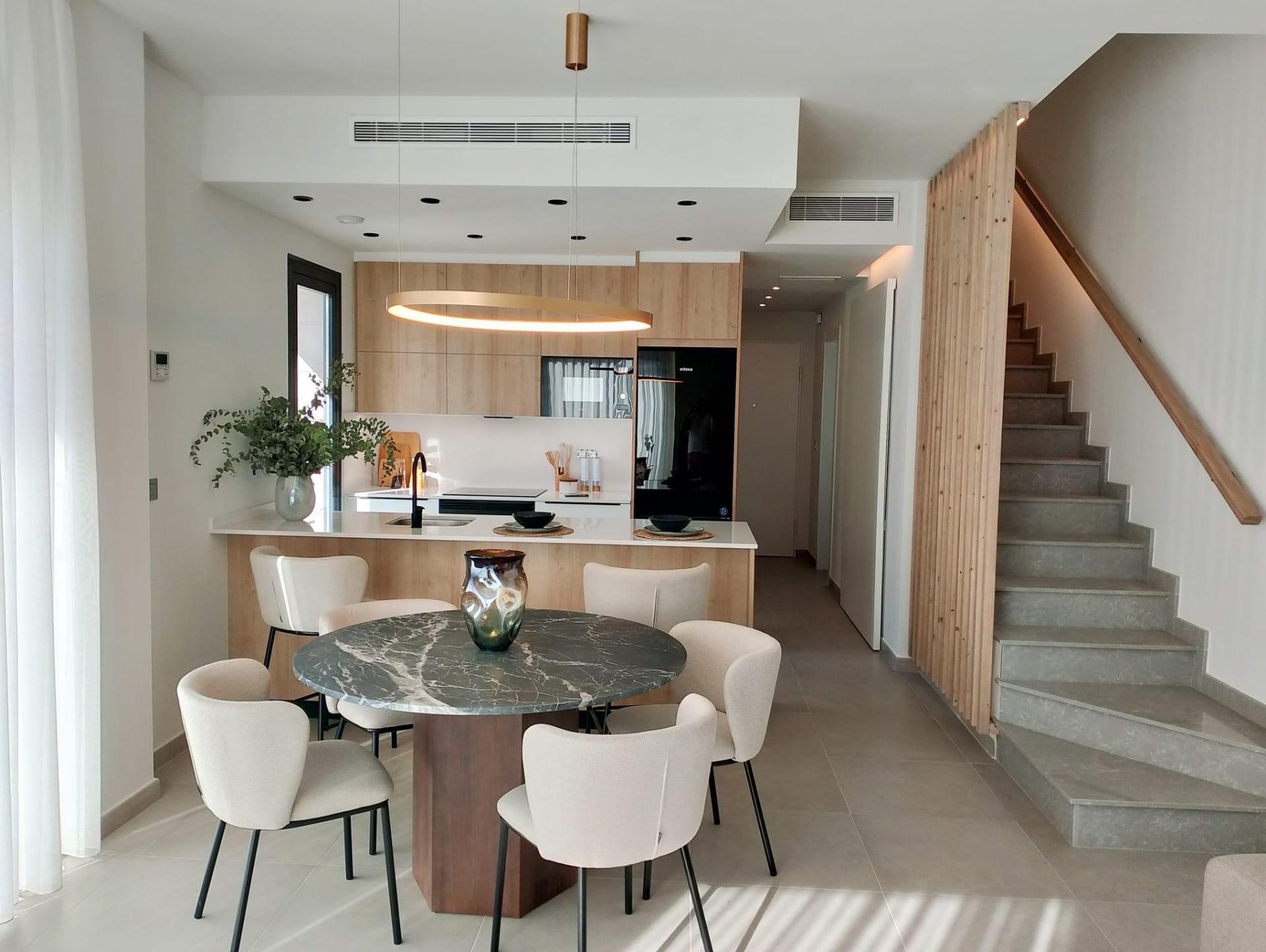 NIEUWBOUW VILLA’S IN RODA GOLF RESORT Nieuwbouw project van 12 villa’s gelegen in de woonwijk Roda Golf met fietsafstand naar het strand. Prachtige villa’s gebouwd over twee verdiepingen, heeft 3 slaapkamers, 2 badkamers, open keuken met ruime woonkamer, inbouwkasten, terras, privé tuin met het zwembad, parkeerplaats. Perfecte locatie voor degenen die graag dicht bij zowel het strand als golf zijn. Er zijn een paar kilometer naar een aantal geweldige golfbanen, bijvoorbeeld Mar Menor Golf Resort, La Manga Club, Lo Romero (Pilar de la Horadada), Las Ramblas, Villamartin, Campoamor en Las Colinas. Een korte rit naar de historische Spaanse steden Cartagena en Murcia. Slechts 15 minuten rijden naar het bekende winkelcentrum La Zenia Boulevard. Villas gelegen op 30 minuten van de luchthaven van Murcia – Corvera en 1 uur van de luchthaven van Alicante.