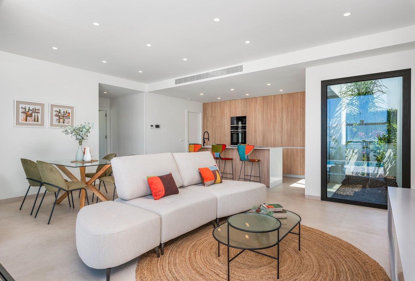 NIEUWBOUW VILLA’S IN SAN JAVIER Nieuwbouw villa’s in San Javier. Villas gebouwd over 1 verdieping en bestaat uit 3 slaapkamers, 2 badkamers, open keuken, de woonkamer met open uitzicht op het terras, prive tuin met het zwembad. Volledig ingerichte keuken in wit glans of hout kleur omvat Inductie kookplaat met geïntegreerde afzuigkap, oven, magnetron, wasmachine, geïntegreerde koelkast, en geïntegreerde vaatwasser. Volledige Air Conditioning installatie via kanalen. Zwembad heeft pre-installatie voor warmtepomp. San Javier ligt dicht bij alle voorzieningen met gemakkelijke toegang tot het strand, watersporten, winkels en het transportnetwerk. Hier kunt u genieten van alle faciliteiten die San Javier te bieden heeft, zoals de plaatselijke winkels, bars en restaurants, maar ook in de buurt van winkelcentra, de luchthaven van Murcia en alle mooie plekken die langs de Mar Menor te vinden zijn. De luchthaven van Corvera/Murcia ligt op 30 minuten afstand en die van Alicante op 45 minuten.