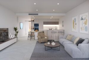 WOONCOMPLEX VAN NIEUWBOUW IN PRIVÉ URBANISATIE IN DE PROVINCIE MURCIA. Residentieel complex van nieuw gebouwde appartementen in privé urbanisatie met 24-uurs beveiliging. Mooie woningen met 1, 2 en 3 slaapkamers en 1 of 2 badkamers, open keuken met ruime woonkamer, inbouwkasten, terrassen met uitzicht op de groene zones van dit grote luxe resort. Het complex heeft een gemeenschappelijk zwembad en alle woningen hebben een parkeerplaats en berging. Gelegen in een omheind privécomplex, met een hoofdingang en 24-uurs beveiliging. Het complex is ontworpen rond een indrukwekkend groen gebied van 126.000 m2. Het heeft wandel- en fietspaden, sportfaciliteiten, paddle- en tennisbanen, een minigolfbaan, tuinen, hondenparken, recreatiegebieden, clubhuis….. Ook in het centrale gebied ligt het juweel van het complex, een kunstmatig meer met kristalhelder water van bijna 17.000 m2 wateroppervlak, omgeven door witte zandstranden en palmbomen, dat een stukje Caribisch gebied naar de regio Murcia brengt. Er zijn 2 eilanden in het meer, waarvan er één een eigen bar heeft, en er zijn ook “Chiringuitos de playa” (strandbars) verspreid over het meer. Het complex is strategisch gelegen op minder dan 4 km van het strand en de stad Los Alcazares, waar je verschillende watersporten kunt beoefenen, omringd door verschillende golfbanen, de stad Cartagena op minder dan 15 minuten rijden en op 22 km van de luchthaven van Murcia.