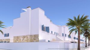 NIEUWBOUW WOONCOMPLEX IN TORRE DE LA HORADADA Nieuwbouw wooncomplex van bungalowappartementen met gemeenschappelijk zwembad in Torre de la Horadada op 800m van het strand. Alle woningen hebben 3 slaapkamers, 2 badkamers, open keuken met zithoek, inbouwkasten en terras. Alle woningen hebben een eigen tuin en parkeerplaats. Bovendien hebben de bungalows op de bovenste verdieping een privésolarium. Torre de la Horadada ligt ten zuiden van Alicante op een prachtige locatie aan de kust. De prachtige stranden van Torre de la Horadada en Mil Palmeras hebben fijn zand en een mooie boulevard. Er zijn veel restaurants, bars en winkels, ook watersporten, duiken en snorkelen. Het heeft goede verbindingen op slechts 40 minuten van de luchthavens van Alicante en Murcias Corvera, met grote commerciële winkelcentra en meerdere golfbanen allemaal binnen handbereik.