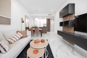 Nieuwbouwproject in San Miguel de Salinas op een steenworp afstand van het stadscentrum Ruime appartementen met indrukwekkende voorzieningen Dit nieuw gebouwde wooncomplex in San Miguel de Salinas biedt moderne flats met 2 slaapkamers en ruime terrassen, zorgvuldig verdeeld over zeven verdiepingen. De omheinde gemeenschap biedt eersteklas faciliteiten, waaronder aparte zwembaden voor volwassenen en kinderen, weelderige groene zones, een kinderspeelplaats en een petanqueterrein. Bevoorrechte locatie aan de Costa Blanca Deze urbanisatie ligt in het charmante stadje San Miguel de Salinas, op een strategische locatie aan de Costa Blanca. Het ligt op loopafstand van het stadscentrum, waar je alle essentiële voorzieningen voor het dagelijks leven vindt, waaronder winkels, restaurants en gezondheidscentra. De woning ligt op korte rijafstand van verschillende bezienswaardigheden: Golfbanen Las Colinas en Campoamor: op slechts 7 km afstand, perfect voor golfliefhebbers. Stranden van Orihuela Costa en Torrevieja: Gelegen op ongeveer 10 km van de residentie, met prachtige zandstranden. Winkelcentra: Zenia Boulevard, een populaire winkelbestemming, ligt op slechts 9 km afstand. Vliegveld Alicante: Op 50 km afstand. Luchthaven Murcia Corvera: Op ongeveer 55 km afstand, ideaal voor regionale verbindingen. Hoogwaardige specificaties Elk appartement is ontworpen met moderne afwerking en functionaliteit in het achterhoofd: Volledig ingerichte keukens met apparatuur inbegrepen. Gemotoriseerde rolluiken. Beveiligde toegangsdeur. Warm water door aerothermische verwarming. Volledig geïnstalleerde airconditioning. LAUNCH AANBIEDING: Meubilair pakket inbegrepen voor de eerste eenheden verkocht. Bovendien hebben alle appartementen een eigen parkeerplaats. Over San Miguel de Salinas San Miguel de Salinas is een pittoreske gemeente in de regio Vega Baja del Segura, onderdeel van de bruisende Valenciaanse Gemeenschap. Het dorp ligt dicht bij de grens met Murcia en biedt een prachtig uitzicht op de lagunes van Torrevieja en La Mata, evenals een rustige, familiale sfeer. Je nieuwe huis wacht Of je nu op zoek bent naar een vakantieverblijf of een permanente verblijfplaats, dit nieuwe project in San Miguel de Salinas combineert luxe, comfort en een onovertroffen locatie. Neem vandaag nog contact met ons op voor een bezichtiging en zet de eerste stap naar je droomhuis aan de Costa Blanca.